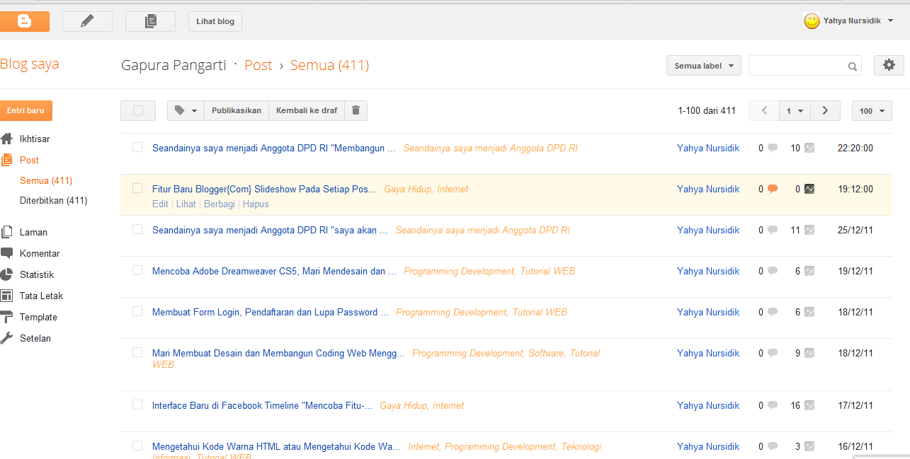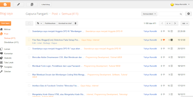 di bawah ini halaman dimana kita bisa melihat postingan mana saja yang sering dikunjungi oleh para pembaca